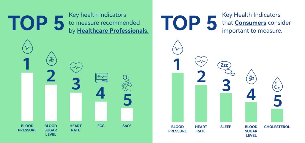 Per i professionisti sanitari, i cinque indicatori più rilevanti sono: pressione sanguigna, glicemia, frequenza cardiaca, saturazione dell’ossigeno nel sangue (SpO₂) ed elettrocardiogramma (ECG). Sempre più medici di base (80%) consigliano l’uso di smartwatch ai propri pazienti, auspicando una maggiore partecipazione nella gestione preventiva della salute.