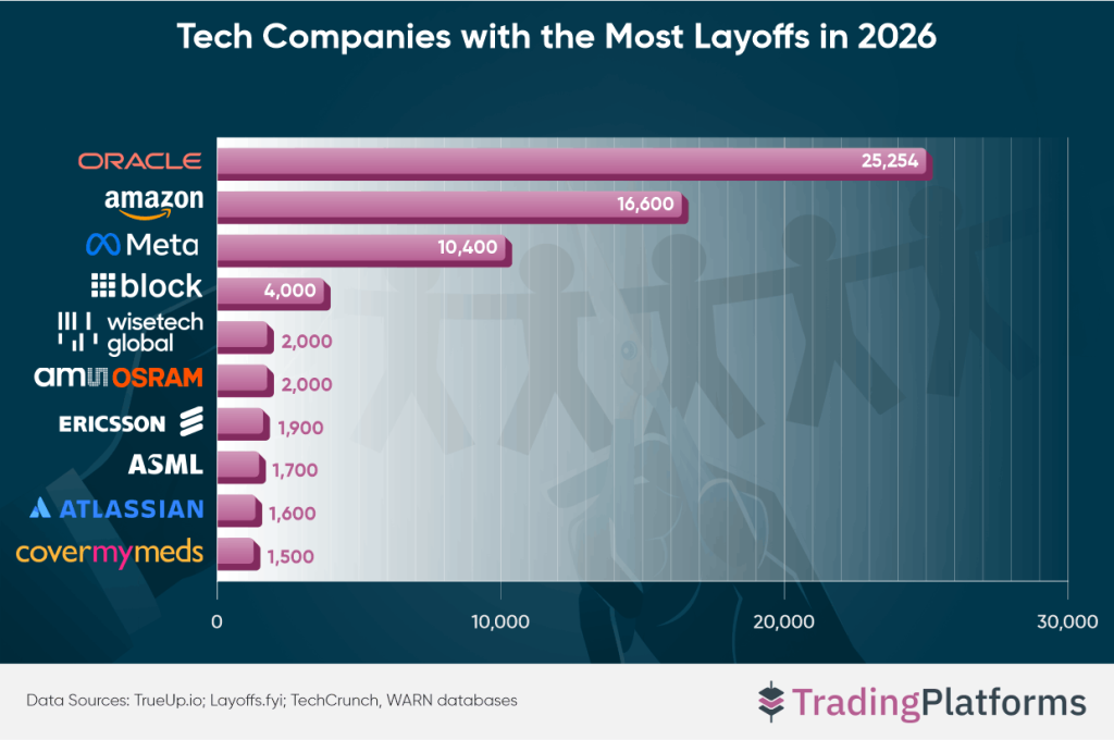 Oracle, Amazon e Meta in cima alla classifica dei tagli