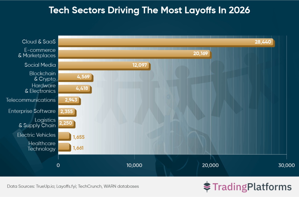 TradingPlatforms stima che, se il ritmo attuale restasse invariato, il settore tech potrebbe arrivare a 298.701 licenziamenti entro fine anno, superando il livello già elevato del 2025, indicato dal report a quota 246.000. Anche su questo punto è utile mantenere prudenza: i tracker pubblici non usano sempre lo stesso perimetro e includono categorie diverse di aziende, aree geografiche e annunci.