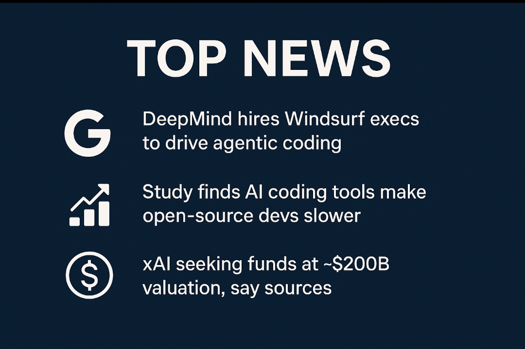Google accoglie Varun Mohan e Douglas Chen di Windsurf nel team DeepMind, mentre uno studio METR dimostra che gli sviluppatori open-source impiegano più tempo con l’IA, pur sentendosi più veloci. Intanto, OpenAI e Microsoft emergono nei retroscena dell’accordo mancato con Windsurf, mentre xAI prepara un nuovo round da record. Si accende anche il dibattito su Grok e le sue risposte modellate su Elon Musk. Ecco tutti i dettagli del giorno.