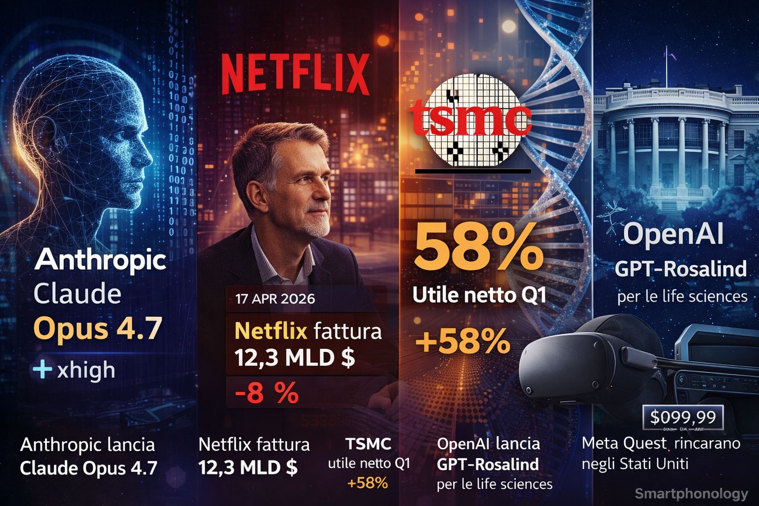 Il 17 aprile 2026 porta in primo piano Anthropic, che aggiorna la linea Claude con Opus 4.7, mentre OpenAI spinge su agenti, ricerca scientifica e software da scrivania. Sullo sfondo restano i grandi temi di queste settimane: domanda AI ancora forte per i semiconduttori, nuove tensioni tra laboratori e governi, rincari hardware legati alla memoria e una pressione crescente su identità digitale, sicurezza e contenuti sintetici.