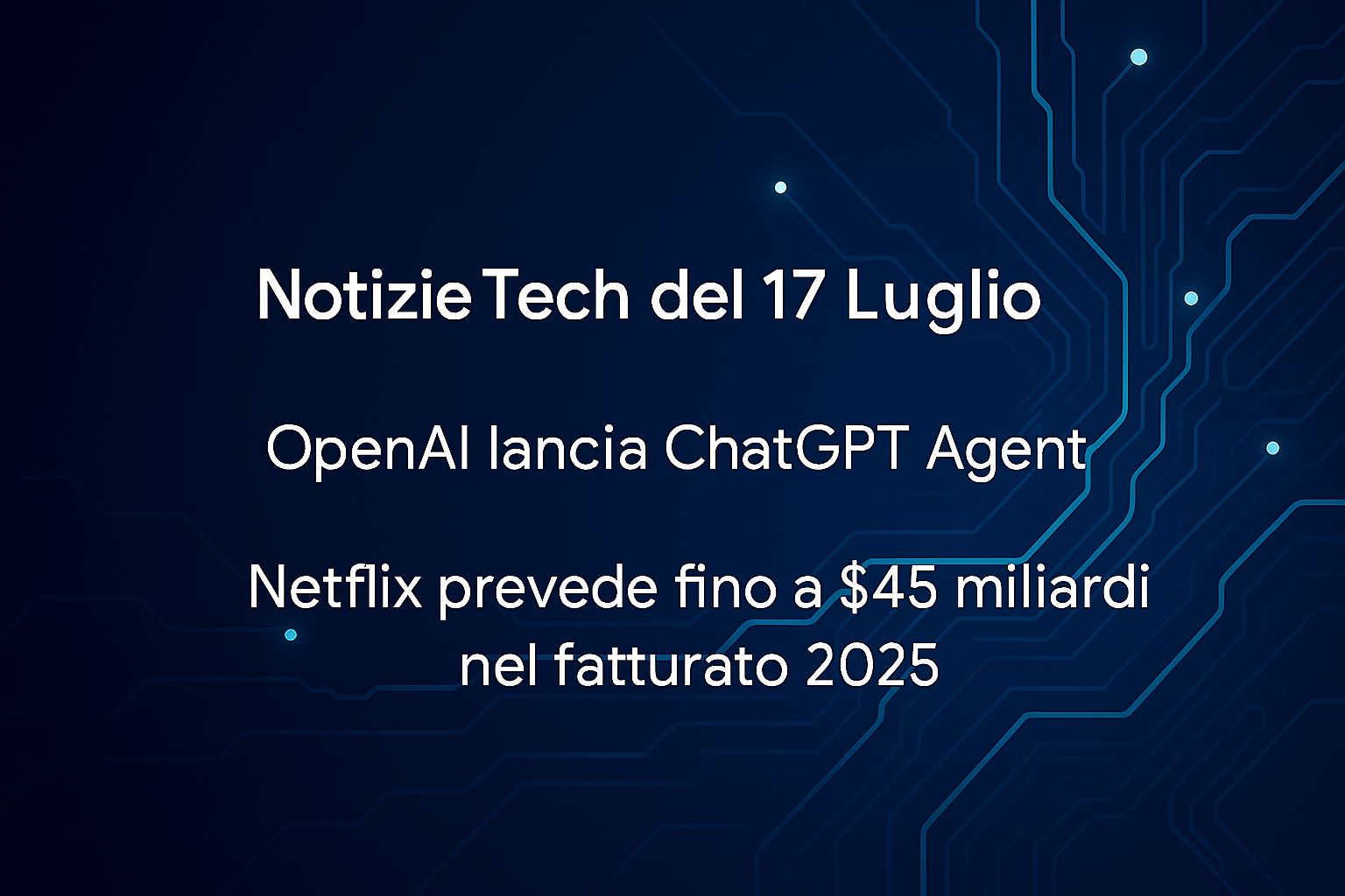 La giornata del 17 luglio è segnata da un grande annuncio nel mondo dell’intelligenza artificiale. OpenAI ha lanciato ChatGPT Agent, un sistema avanzato in grado di controllare un computer, completare attività multi-step e generare file scaricabili. Una novità che segna un passo avanti verso la piena autonomia operativa dei modelli AI. Sul fronte media, Netflix ha presentato i risultati del secondo trimestre 2025 con un incremento dei ricavi del 16% su base annua, confermando una previsione di crescita annua fino a 45,2 miliardi di dollari, ma con segnali di rallentamento nell’engagement degli utenti.