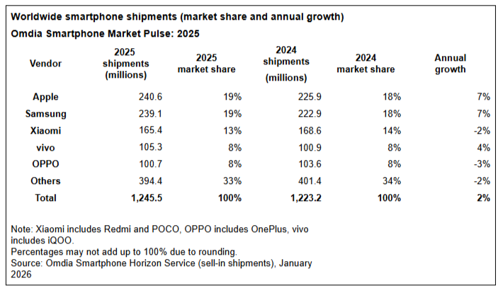 Il mercato globale degli smartphone ha chiuso il 2025 con una crescita moderata ma significativa, mentre sul 2026 iniziano a pesare segnali di pressione strutturale legati ai costi dei componenti e alle memorie. È quanto emerge dall’ultima analisi pubblicata da Omdia, che fotografa un settore tornato ai massimi degli ultimi quattro anni ma esposto a nuove fragilità.