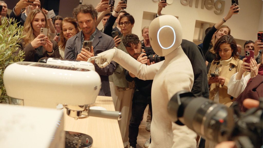 La collaborazione tra 1X e SMEG mette al centro un’idea precisa: il robot domestico non come oggetto separato dall’ambiente, ma come presenza capace di interagire con gli elettrodomestici e con i gesti quotidiani della casa. Nello stand SMEG, NEO viene mostrato mentre si muove in un ambiente cucina e aziona alcuni dispositivi, con l’obiettivo di rappresentare una possibile integrazione tra robotica umanoide, design e automazione domestica.