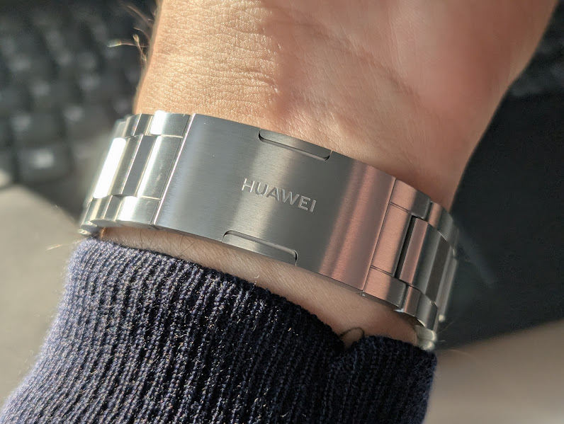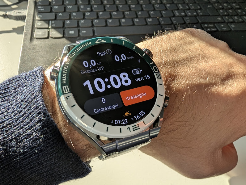 Lo schermo è un pannello LTPO AMOLED da 1,5 pollici, mentre il quadrante è in vetro zaffiro. La luminosità è elevata e non si avranno problemi a consultare le informazioni sul display anche sotto la luce diretta del Sole. Le maglie del cinturino in metallo, non sono facilmente gestibili, ma con un po’ di impegno e di tentativi, si riuscirà a personalizzare anche questo aspetto importante. L’altro cinturino, completamente verde, è costituito da HNBR (Hydrogenated Nitrile Butadiene Rubber, gomma nitrilica butadiene idrogenata), ed è un elastomero sintetico derivato dalla gomma nitrilica (NBR) mediante un processo di idrogenazione. O almeno, così ci spiega ChatGPT.