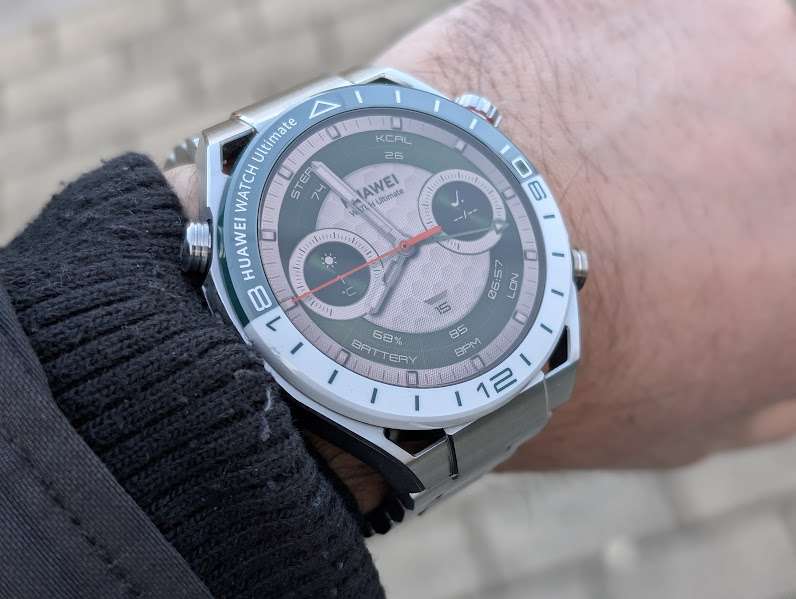 Come il GT 5 Pro, HUAWEI Watch Ultimate Green fa dell’aspetto la sua arma principale. Nella sua veste standard, è costruito in metallo liquido a base di zirconio. Una lega resistente e che nella nostra prova non ha mostrato alcun timore ad urti improvvisi. La ghiera bicolore è in ceramica nanotech ed è molto piacevole al tocco. Il retro della cassa è in ceramica nanocristallina e i pulsanti in lega di titanio. Tutti questi materiali rendono questo smartwatch più un gioiello tecnologico impreziosito da materiali resistenti e ricercati. Non è solo un dispositivo per mantenere sotto controllo salute e attività sportive, ma un vero e proprio oggetto di lusso. Inoltre, resiste agli schizzi d’acqua e al sudore, ma anche al mare e in piscina.