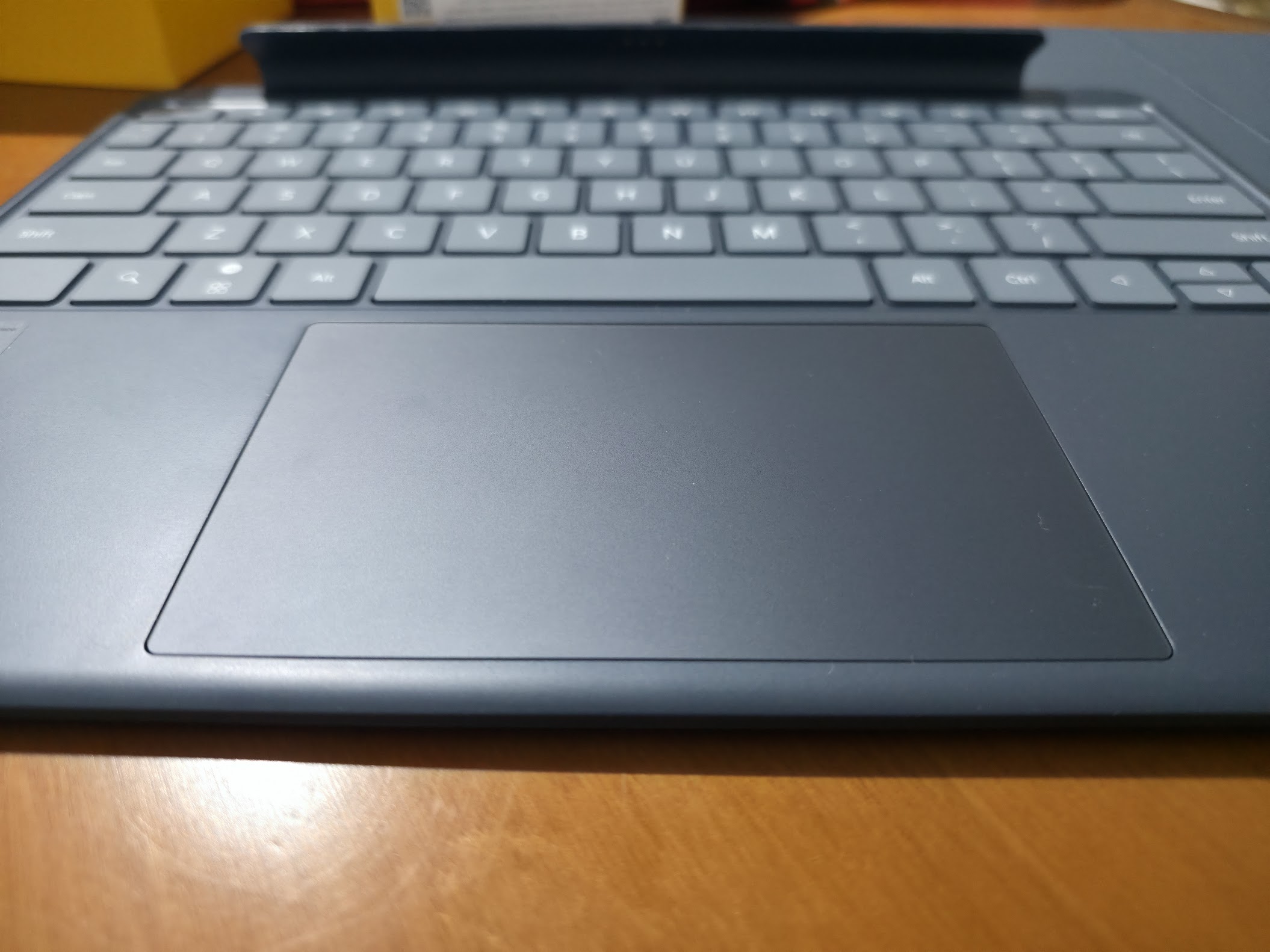 A proposito di cover, come detto in precedenza si divide in due. Una parte sostiene il display, anche quando la tastiera è staccata. Quando agganciamo la tastiera disponiamo di un supporto completo, con tanto di touchpad. L’aggancio è un po’ complicato, bisogna lavorarci un attimo. Inoltre, quando vogliamo utilizzare il tablet da seduti, sarà necessario rimuovere la tastiera e dunque anche l’altra cover. Poco male, potremo utilizzare la tastiera sullo schermo, tanto è molto ampio. Apprezzabile e più che soddisfacente la corsa dei tasti della tastiera. La digitazione è ottima e sembra di avere a che fare quasi con un convertibile o un laptop.