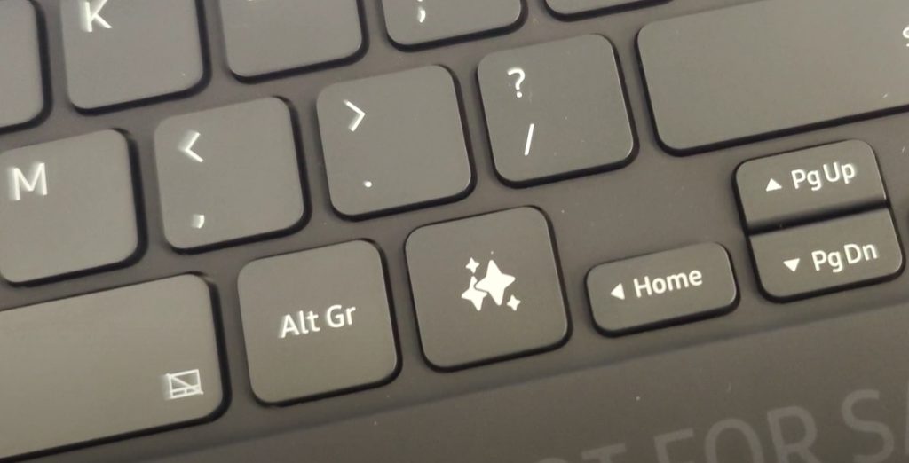 La Book Cover Keyboard con tasto Galaxy AI facilita l’accesso alle funzioni di intelligenza artificiale e consente di personalizzare l’assistente AI, scegliendo tra Bixby di Samsung e Gemini di Google.