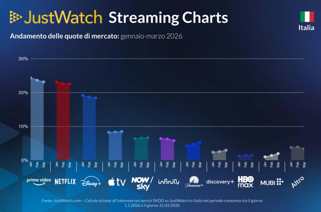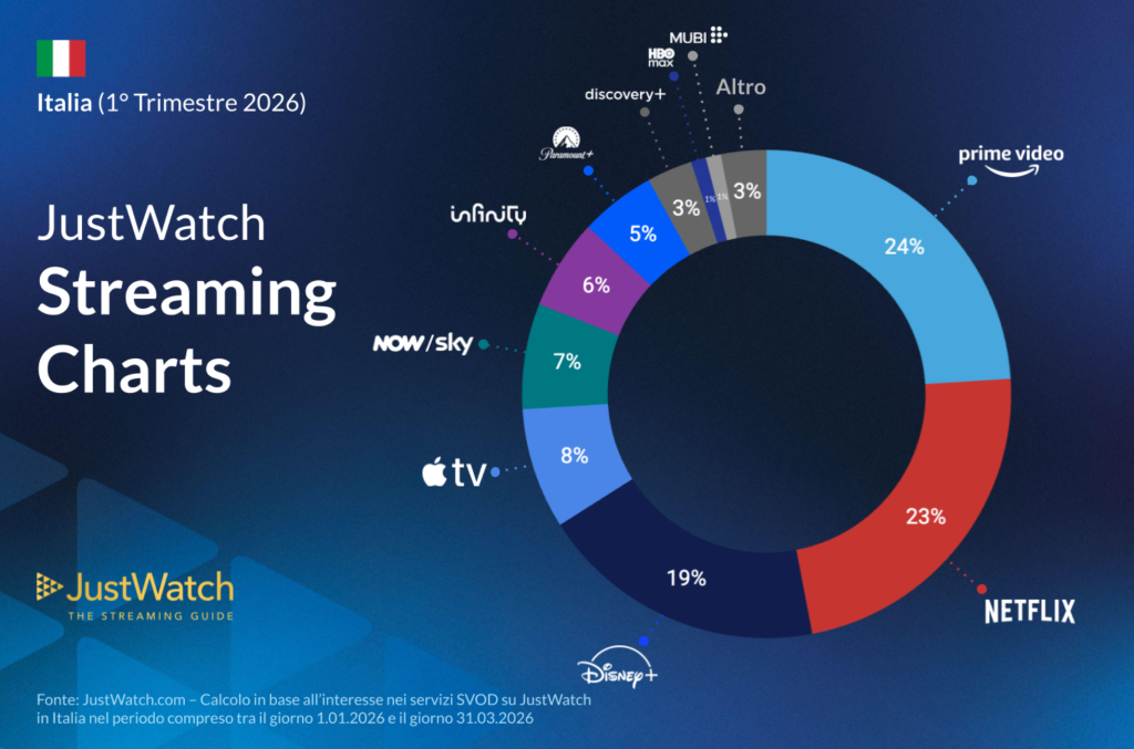 Si tratta di una quota ancora iniziale, ma sufficiente per inserire un nuovo soggetto nel confronto competitivo. Lo stesso Andrea Cuneo, Country Manager Italia di JustWatch, ha indicato questo debutto come uno dei fattori che potrebbero contribuire a ridefinire gli equilibri del mercato nel corso dei prossimi trimestri.